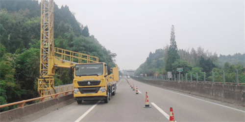 一輛橋梁檢測(cè)車在成渝高速麻柳灣大橋橋側(cè)撐起腳架,臂架經(jīng)旋轉(zhuǎn)與橋側(cè)垂直,伸縮臂旋轉(zhuǎn)后,慢慢展開。橋梁工程師們戴著安全帽,身著工作服,拿著專業(yè)的檢測(cè)設(shè)備進(jìn)入檢測(cè)平臺(tái),橋梁外觀缺陷、混凝土碳化深度、混凝土強(qiáng)度、鋼筋保護(hù)層厚度、鋼筋銹蝕等,一項(xiàng)項(xiàng)檢測(cè)工作有序進(jìn)行,2021年度首次橋梁檢測(cè)工作就此展開。