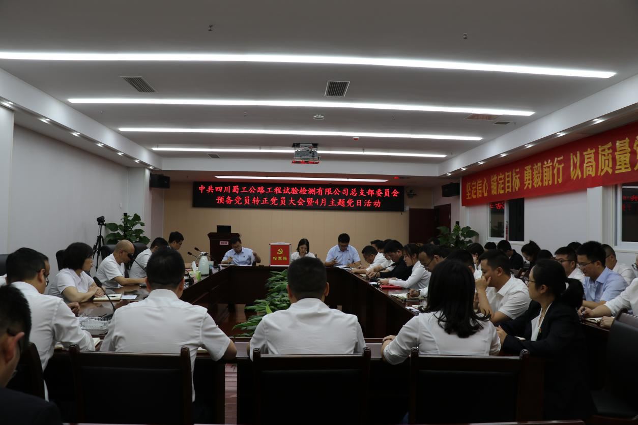 4月28日,檢測公司黨總支召開預備黨員轉正黨員大會暨4月主題黨日活動,會議由黨總支書記、董事長倪建軍同志主持,檢測公司黨總支正式黨員和預備黨員共計40人參加本次會議。檢測公司黨總支嚴格按照黨員發展程序,討論預備黨員張瀟同志轉正有關事宜。預備黨員張瀟同志匯報了自己在預備期間的有關情況,表達了如期轉為中共正式黨員的意愿和為之奮斗終身的決心。培養聯系人景勝和俞偉分別介紹了預備黨員張瀟同志的主要情況,并對其能否轉正表明意見。黨總支副書記、副董事長、副總經理周琦森同志代表黨總支向黨員大會介紹了張瀟同志在預備期間教育和考察情況,隨后與會黨員充分討論并發表意見,最后進行無記名投票表決。經過全體參會正式黨員投票,一致同意張瀟同志按期轉為中共正式黨員。