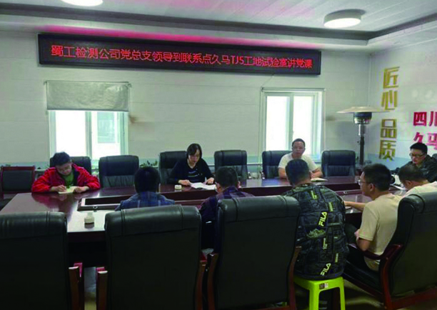黨總支紀(jì)律檢查委員、董事、副總經(jīng)理、工會(huì)主席劉紅到黨建聯(lián)系點(diǎn)久馬TJ5工地試驗(yàn)室講黨課