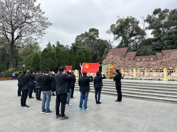講解結束后,全體黨員干部在莊嚴的烈士墓碑前向革命烈士默哀、鞠躬、獻花,以此追思革命先烈英勇頑強、不怕犧牲、無私奉獻、忠誠為民的革命精神,寄托對革命先烈崇高的敬意和無限的哀思。最后,全體黨員干部在莊嚴的紀念碑前面向黨旗重溫入黨誓詞,“我志愿加入中國共產黨,擁護黨的綱領,遵守黨的章程…”鏗鏘有力的誓詞久久回蕩,表達了新時代黨員傳承革命先烈精神、繼承革命先烈遺志的堅定信念和堅強決心。