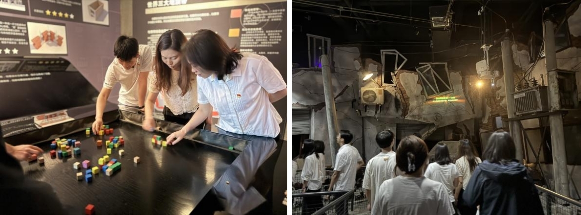 在教育館專業(yè)講解員的帶領(lǐng)下,黨員們參觀了館內(nèi)各展區(qū),系統(tǒng)學(xué)習(xí)了各類災(zāi)害的特點(diǎn)、成因及防范措施。在火災(zāi)逃生體驗(yàn)區(qū),按專業(yè)人員的指導(dǎo),采取捂住口鼻,低姿彎腰等方式,沿著安全通道有序撤離,身臨其境地學(xué)習(xí)了高層住宅、地鐵等生活場(chǎng)景中發(fā)生火災(zāi)時(shí)的逃生技巧。在地震體驗(yàn)區(qū),依次體驗(yàn)了3-8級(jí)的不同震感,搭建了方塊小屋,了解縱波、橫波、縱橫波襲來時(shí)造成的不同影響,學(xué)習(xí)在不同震級(jí)情況下應(yīng)采取的正確避震措施。在認(rèn)識(shí)災(zāi)害區(qū),觀看了泥石流、山洪、滑坡等多種自然災(zāi)害的科普視頻,進(jìn)一步認(rèn)識(shí)了各類自然災(zāi)害的形成機(jī)制和危害特點(diǎn)。