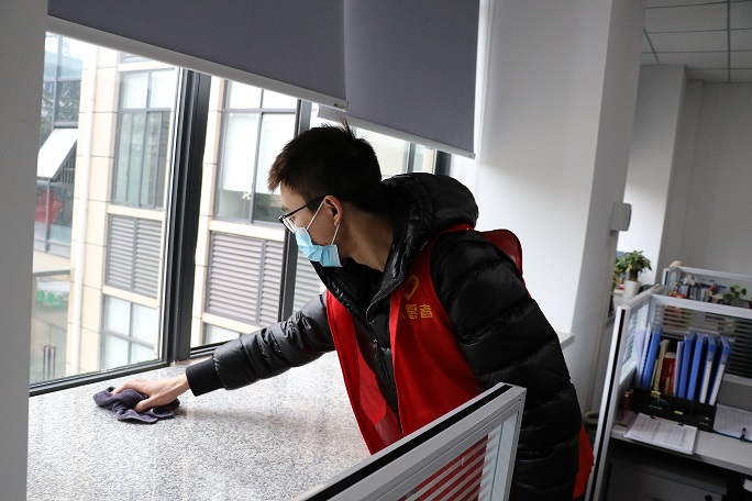 3月14日,檢測公司分區(qū)域、分時段、分組有序開展環(huán)境衛(wèi)生大掃除活動。公司機關(guān)全體職工分成8個小組,分別于上午、下午兩個時段對辦公大院、辦公區(qū)一樓、二樓、三樓辦公室、會議室、試驗室、樓道、衛(wèi)生間、洗手池等公共區(qū)域進行全面細致的大掃除。全體職工身穿紅馬甲,手拿掃帚、抹布,徹底清理死角、盲區(qū)污物,確保工作環(huán)境干凈、整潔、安全。大家用酒精加強對指紋按鍵、門把手等頻繁接觸部位的消毒次數(shù),對公務車輛進行全面消毒,集中處理廚余飯后垃圾,定期消毒大廳內(nèi)口罩專用回收箱,及時清運全部垃圾箱,保持場地清潔衛(wèi)生。同時對公司院落的生活垃圾、衛(wèi)生死角、花壇枯草、溝渠垃圾等進行了徹底清理和消毒,公司環(huán)境衛(wèi)生情況得到明顯提升。