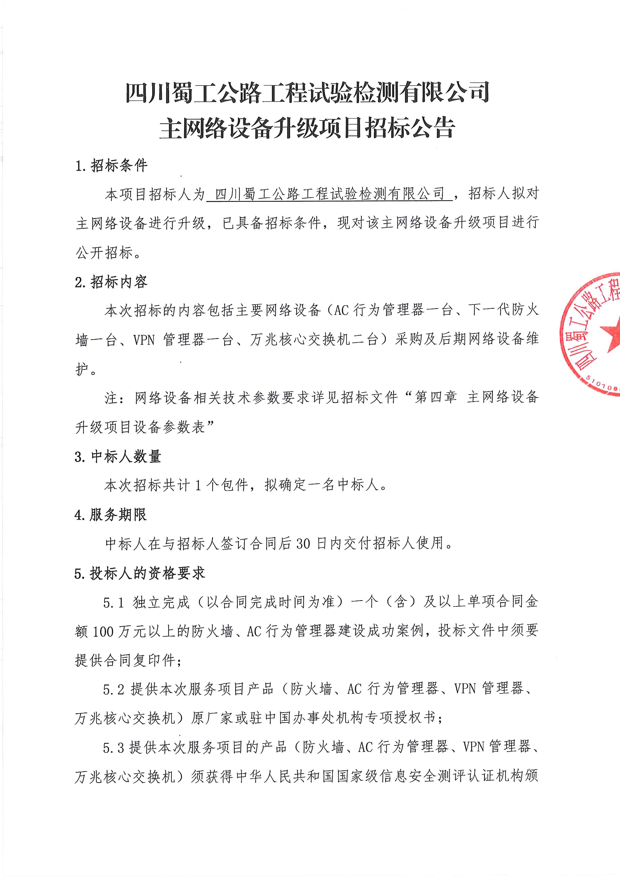 主網絡設備升級項目招標公告