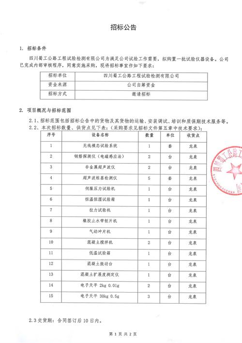 試驗儀器設(shè)備采購邀請招標公告