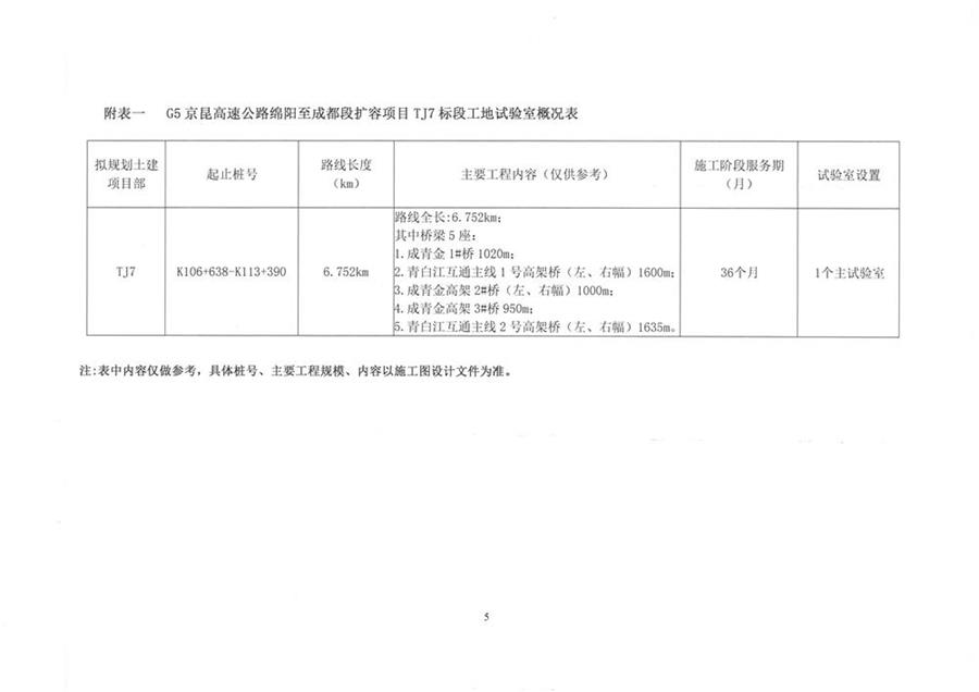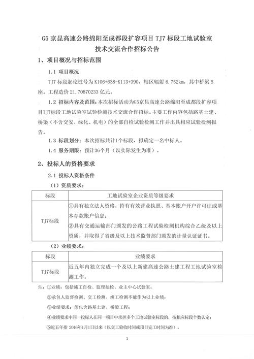 G5京昆高速公路綿陽至成都段擴容項目TJ7標段工地試驗室技術交流合作招標公告