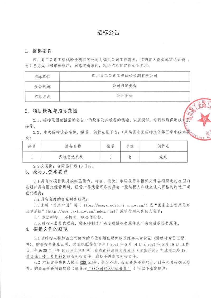 探地雷達(dá)系統(tǒng)采購公開招標(biāo)公告