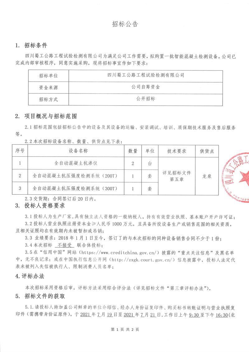 試驗(yàn)儀器設(shè)備采購(gòu)邀請(qǐng)招標(biāo)公告