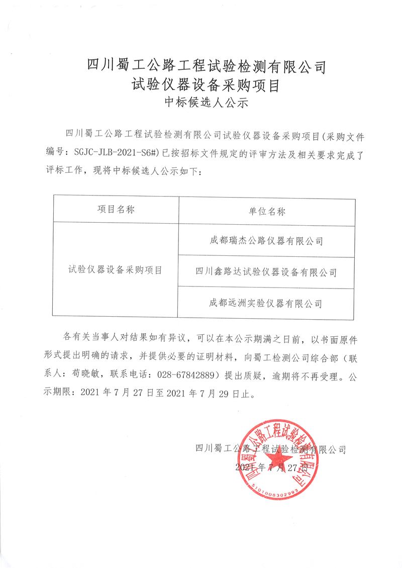 智能混凝土檢測(cè)設(shè)備采購(gòu)項(xiàng)目中標(biāo)候選人公示