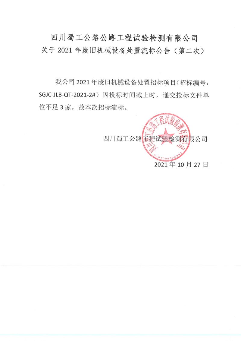 關(guān)于2021年廢舊機(jī)械設(shè)備處置招標(biāo)公告(第三次...