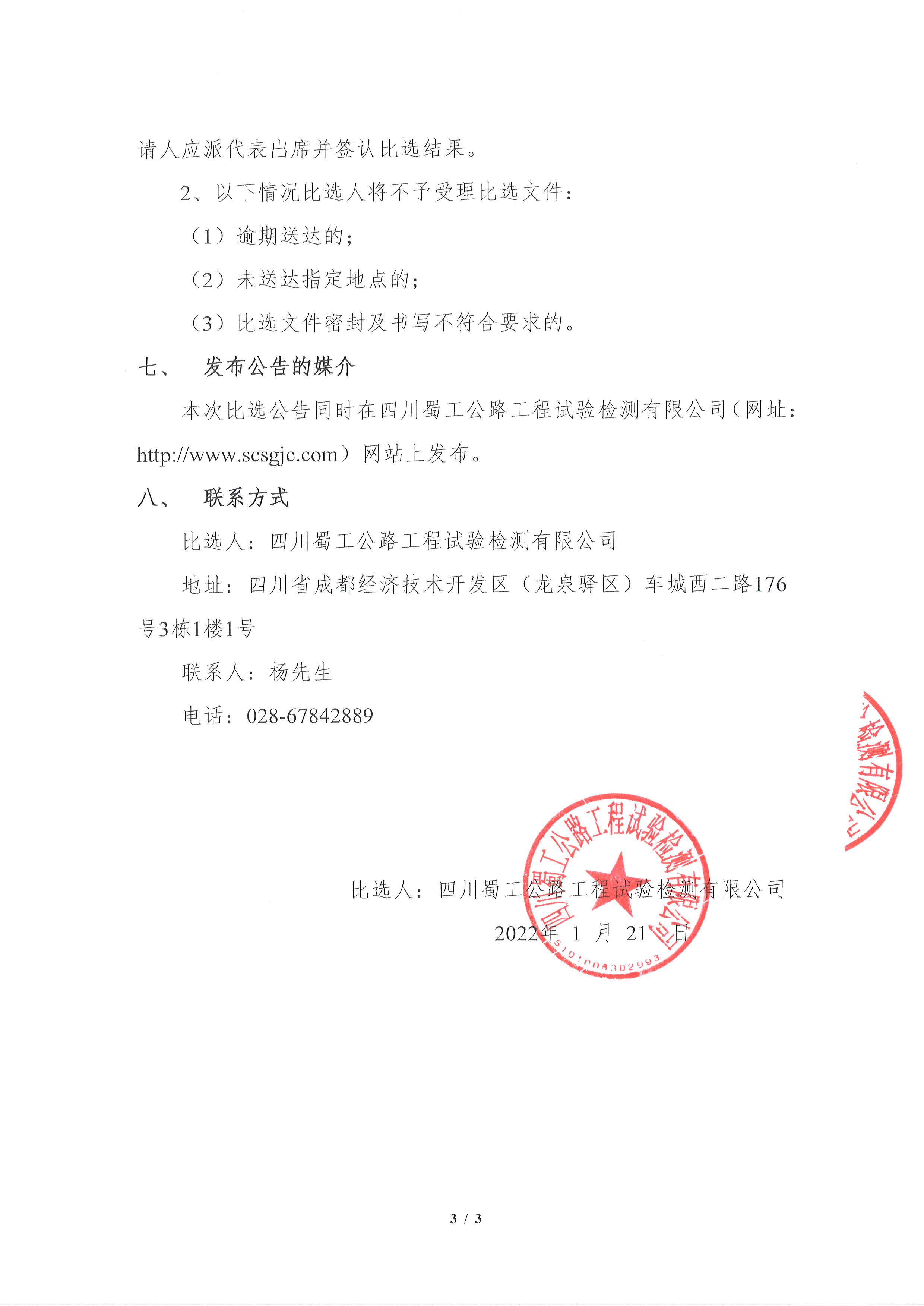 四川蜀工公路工程試驗檢測有限公司辦公家具采購項目比選公告