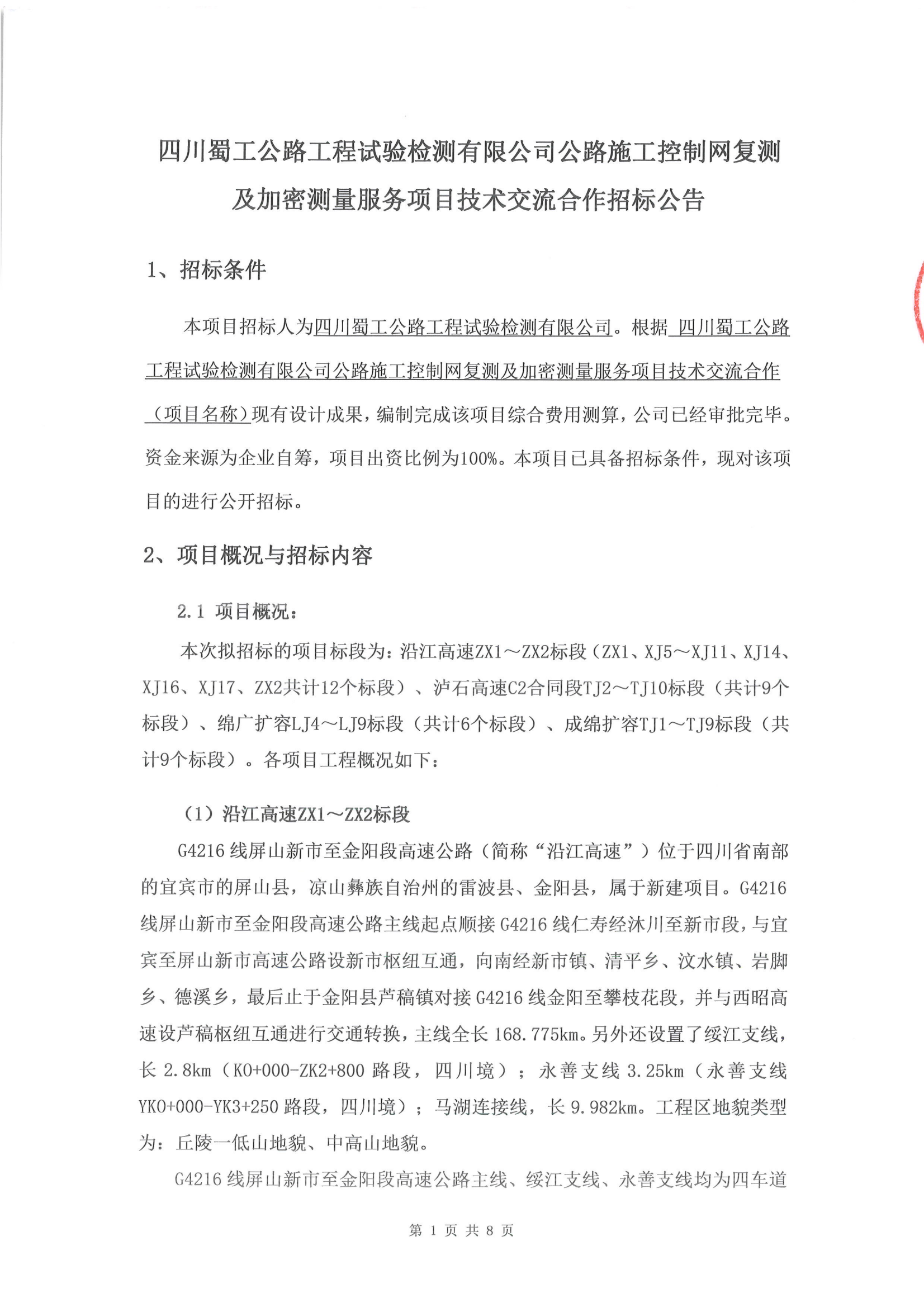 四川蜀工公路工程試驗檢測有限公司公路施工控制網復測及加密測量服務項目技術交流合作
