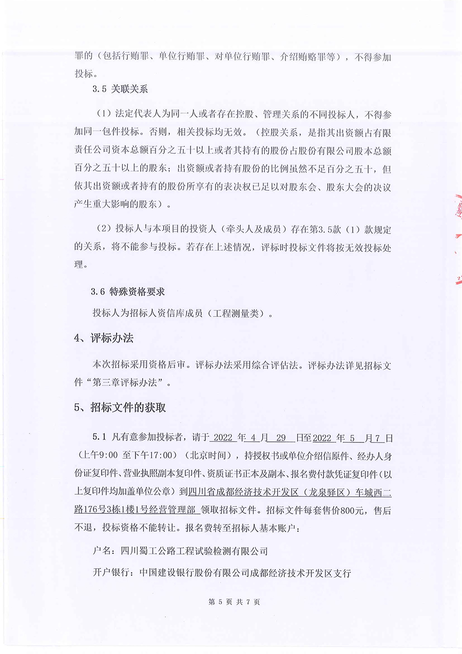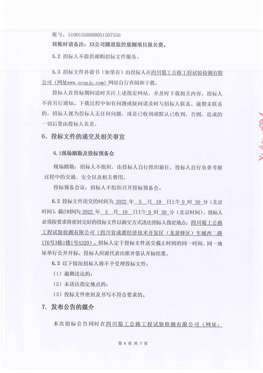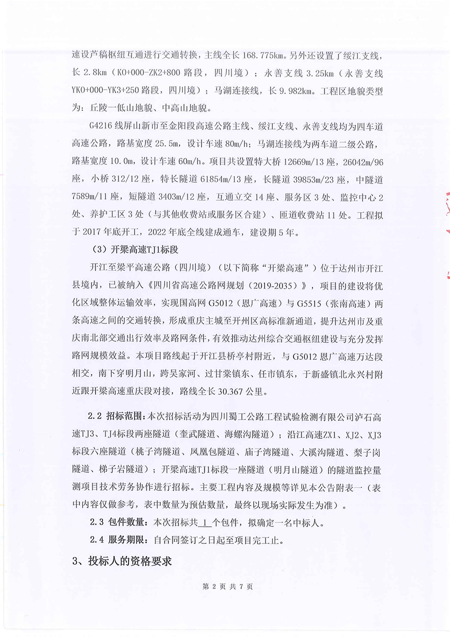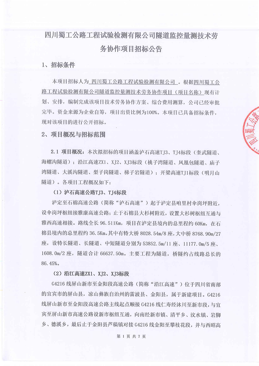 四川蜀工公路工程試驗檢測有限公司隧道監控量測技術勞務協作項目招標公告