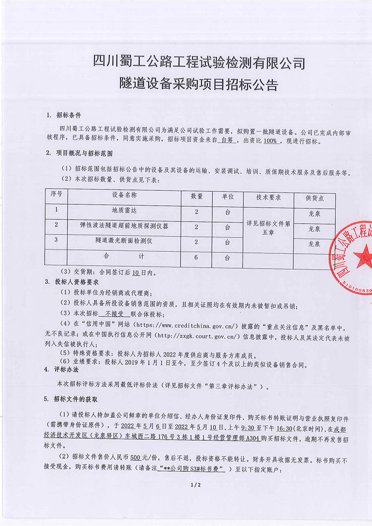 中標公示:四川蜀工公路工程試驗檢測有限公司...