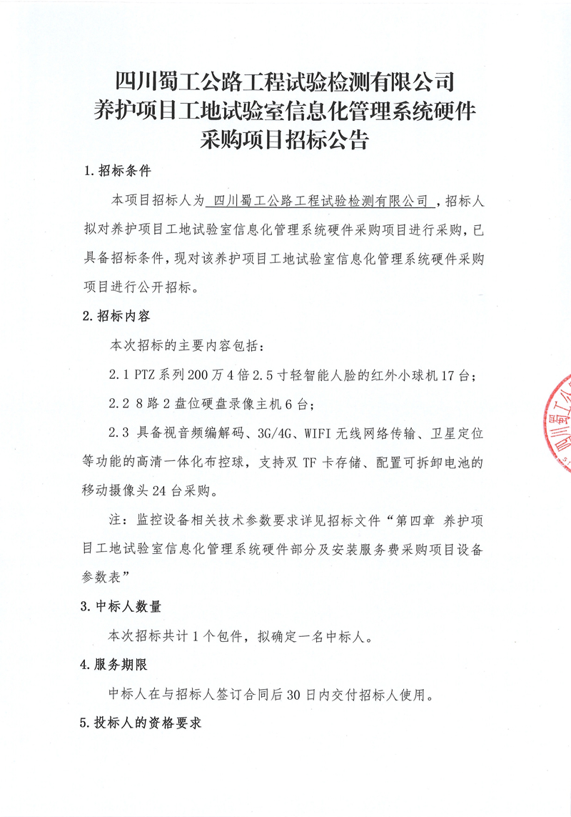 養護項目工地試驗室信息化管理系統硬件采購項目招標公告