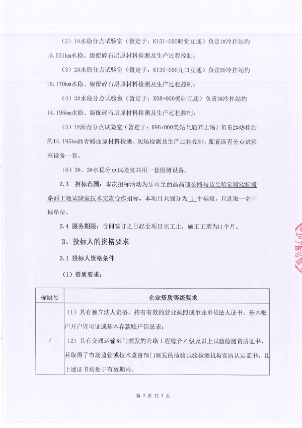 招標公告:樂山至西昌高速公路馬邊至昭覺段S2標段路面工地試驗室技術交流合作