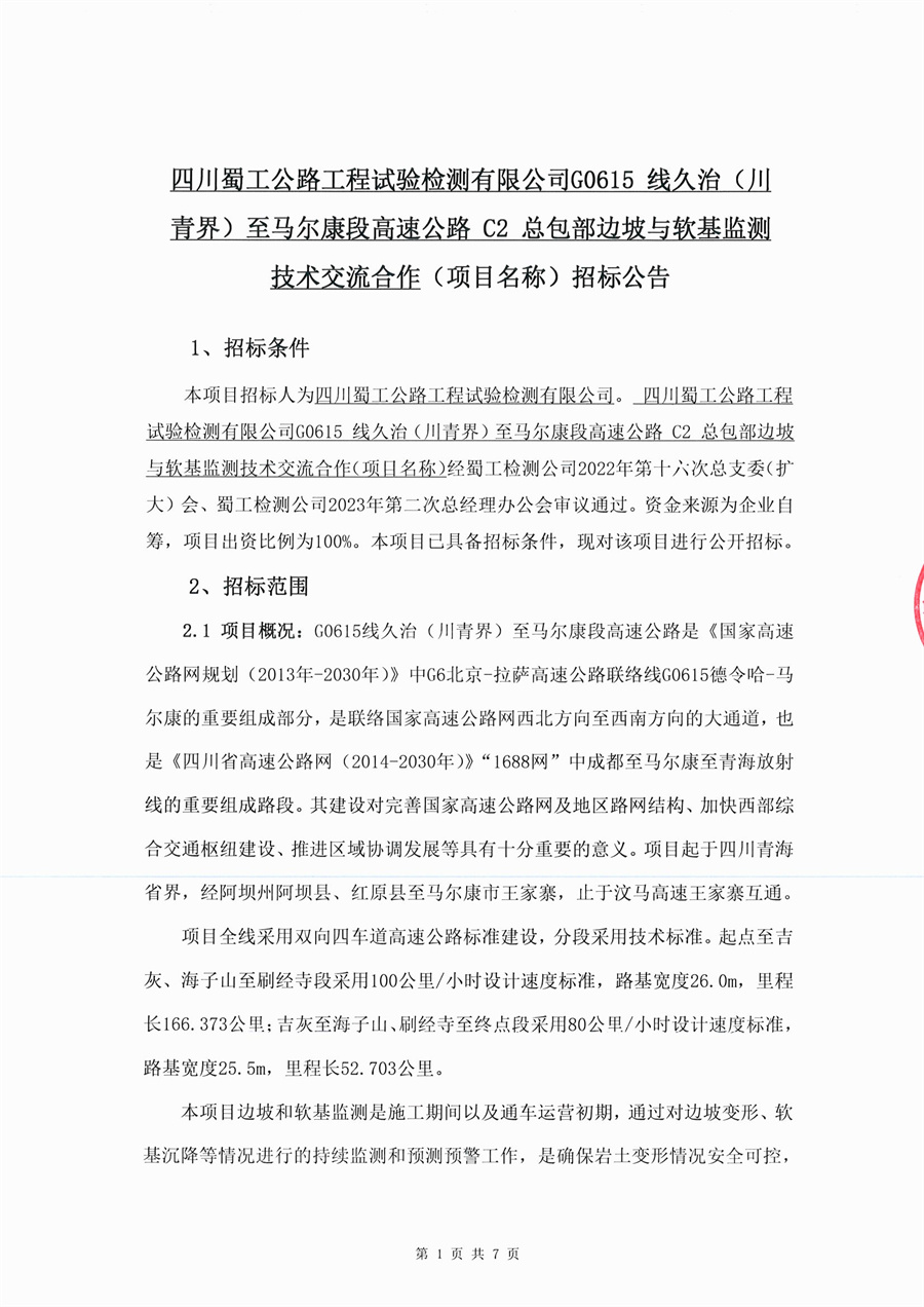 四川蜀工公路工程試驗(yàn)檢測(cè)有限公司基樁鉆探勞...