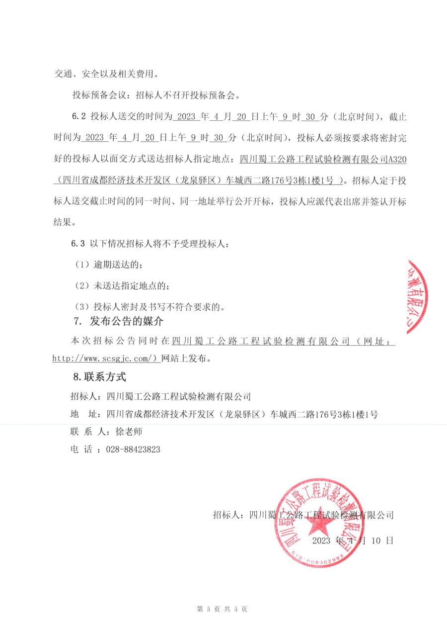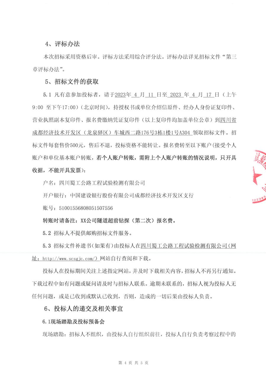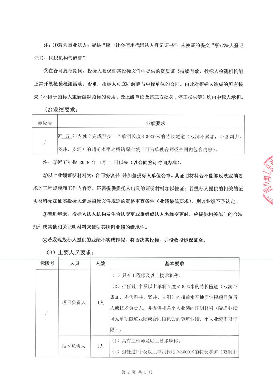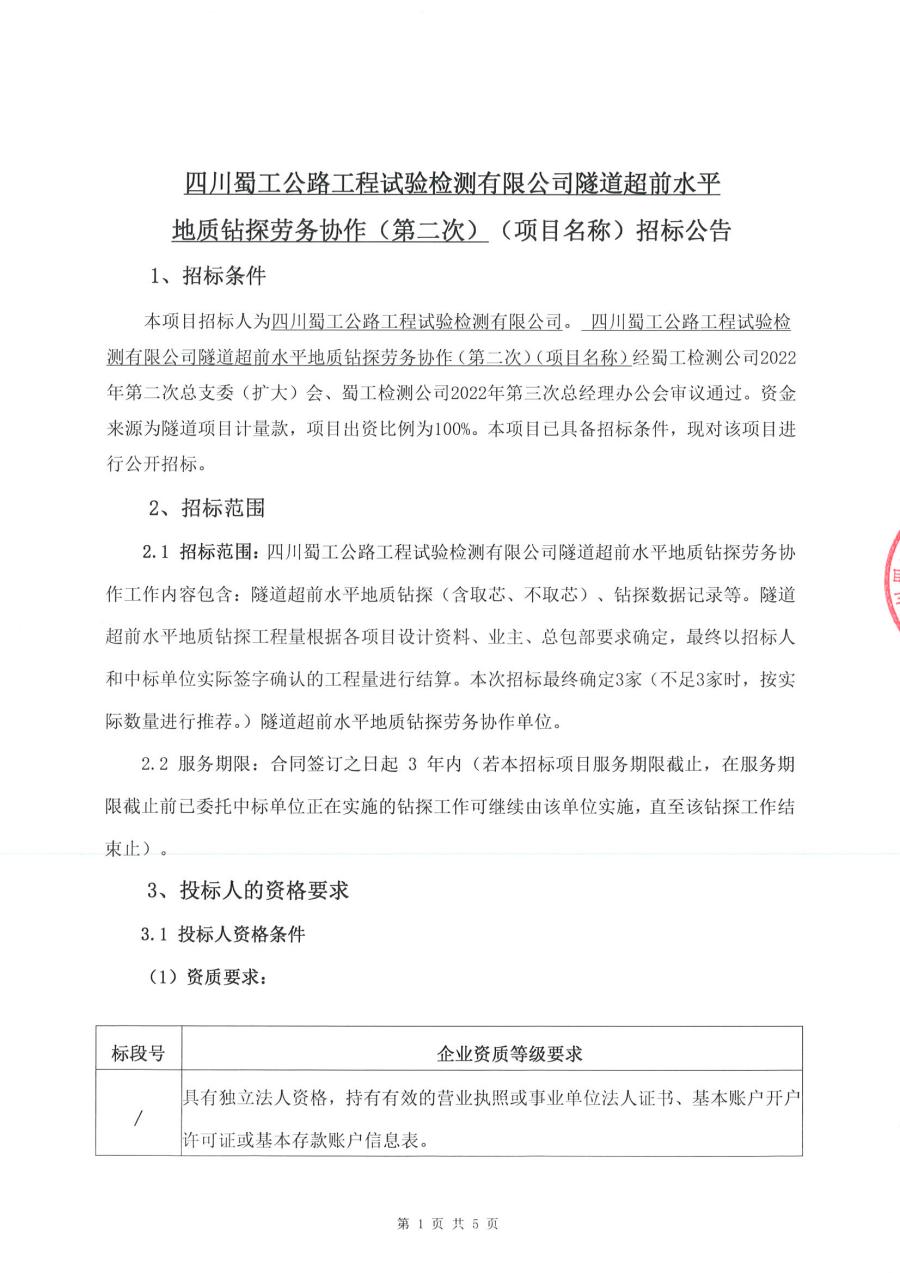 四川蜀工公路工程試驗檢測有限公司隧道超前水平地質鉆探勞務協作(第二次)招標公告