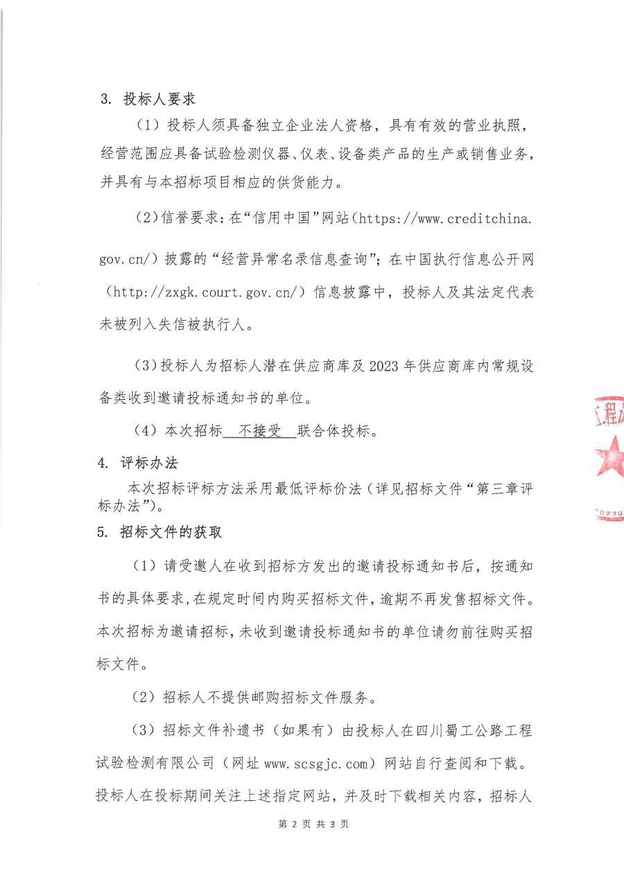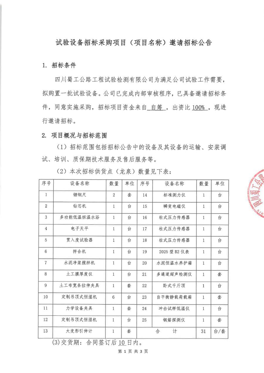 試驗設備招標采購項目邀請招標公告