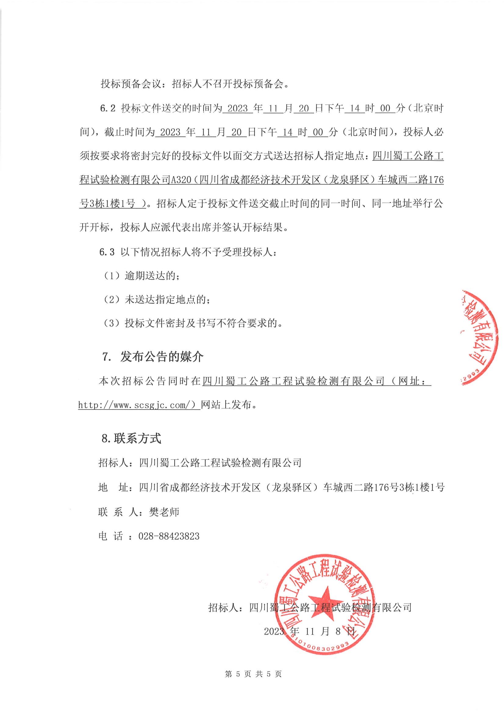 四川蜀工公路工程試驗檢測有限公司2023年度鋼...