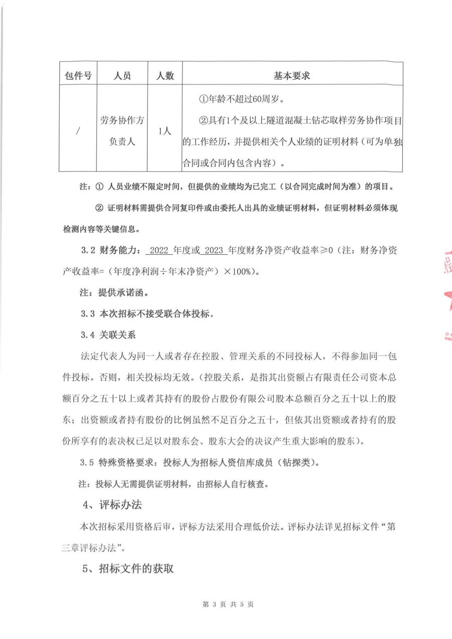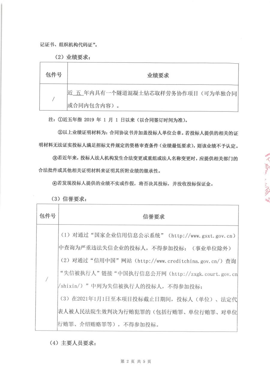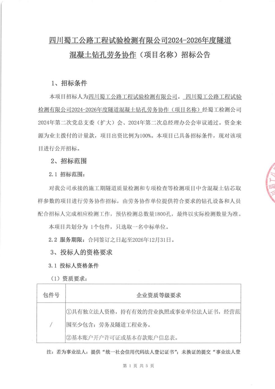 四川蜀工公路工程試驗檢測有限公司2024-2026年隧道混凝土鉆孔勞務協作招標公告
