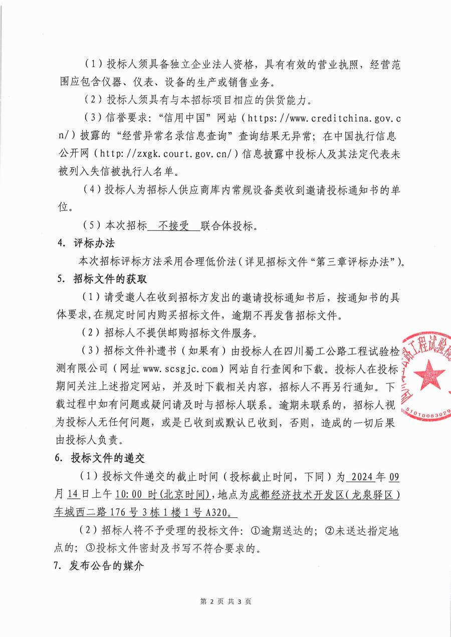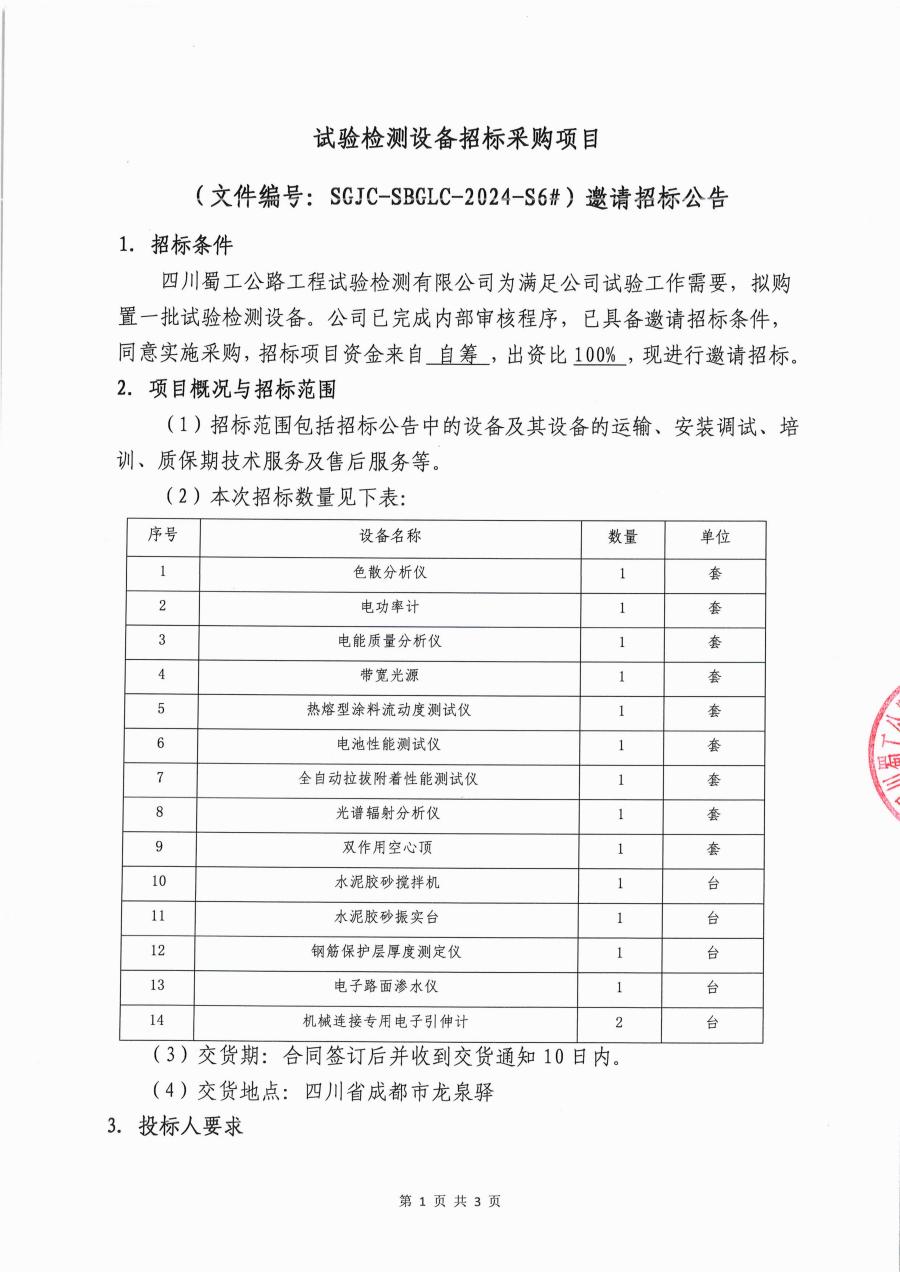 試驗檢測設備招標采購項目(文件編號:SGJC-SBGLC-2024-S6#)邀請招標公告