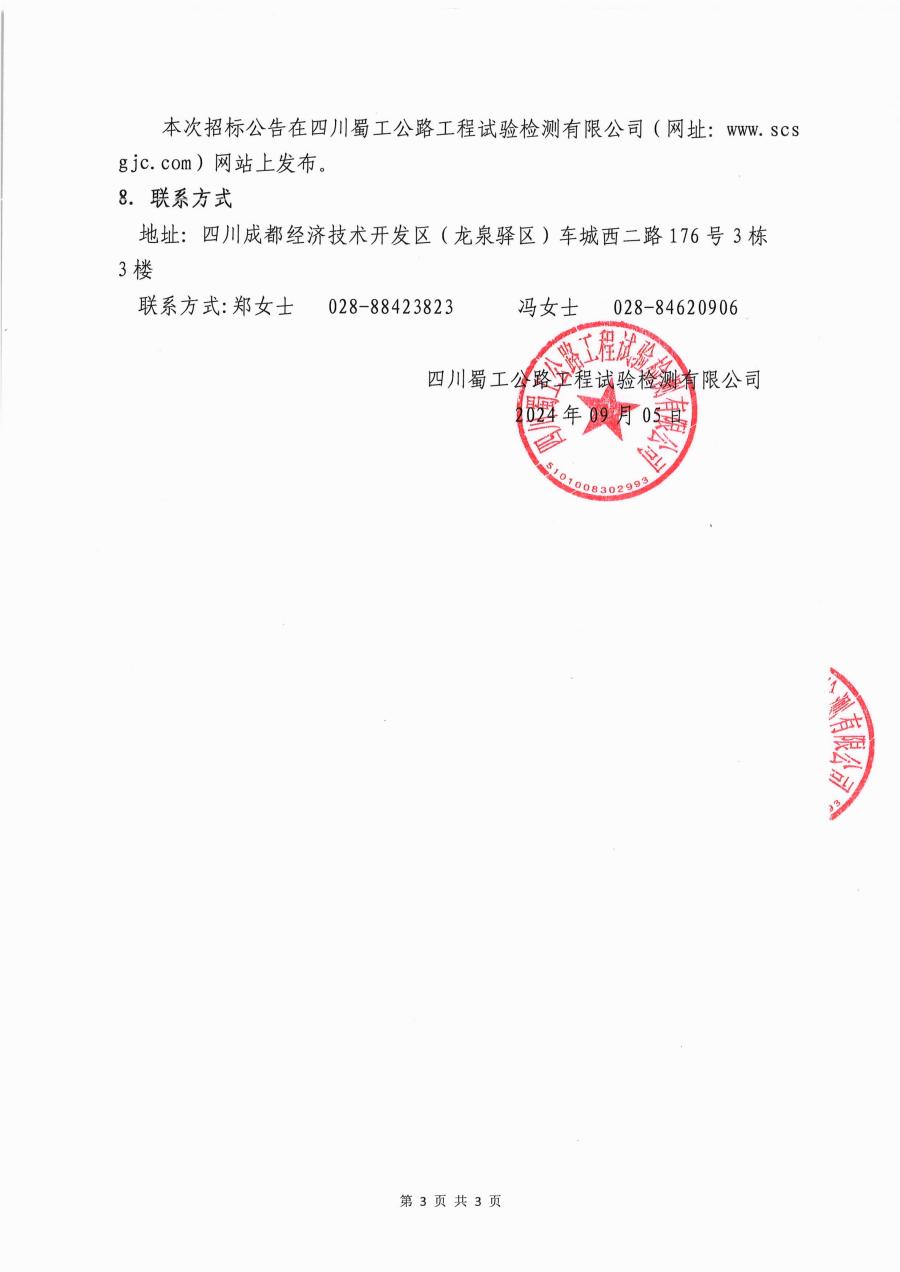 四川蜀工公路工程試驗檢測有限公司2024年沿江...