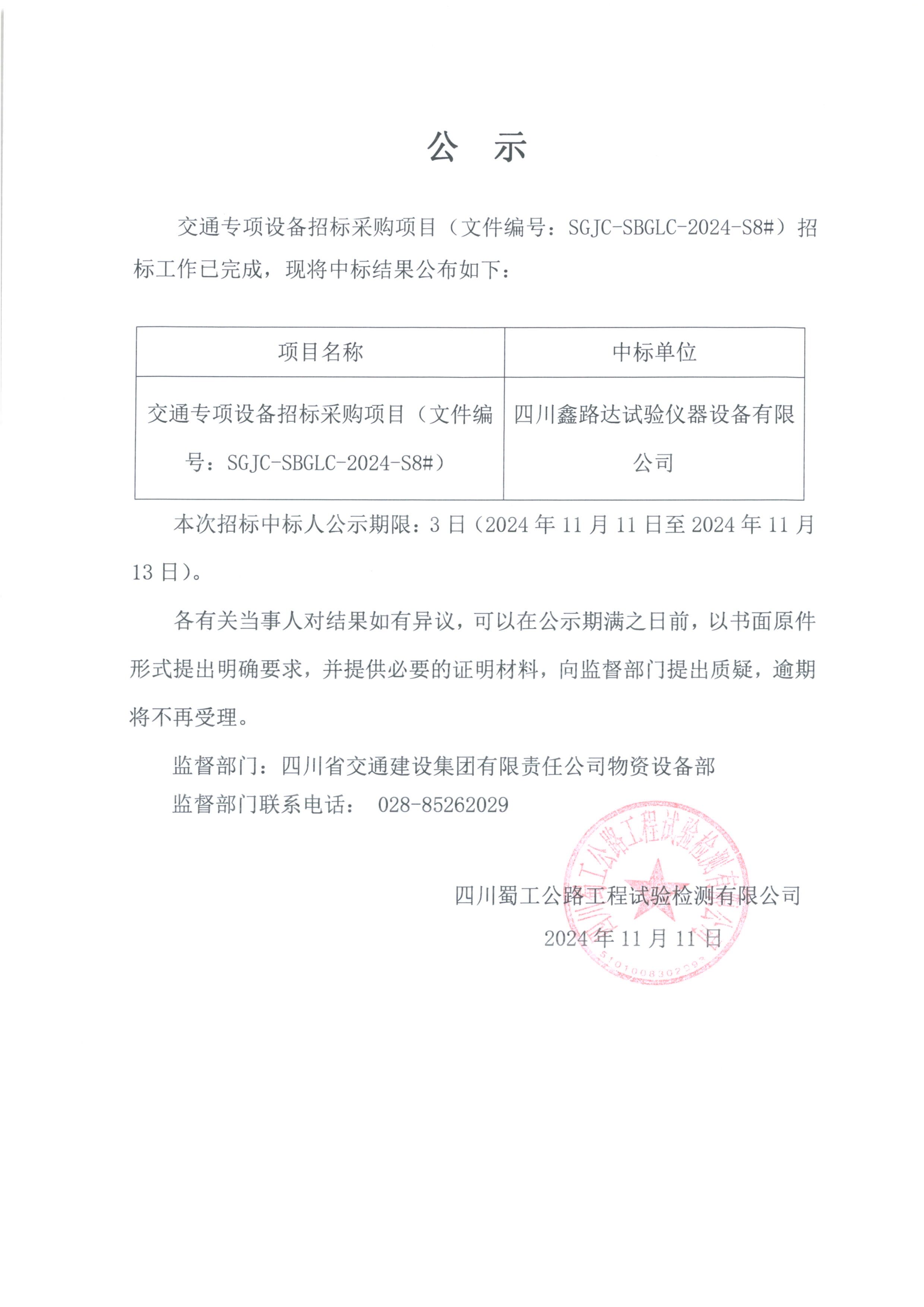 中標(biāo)候選人公示(交通專項(xiàng)設(shè)備(文件編號:SGJC...