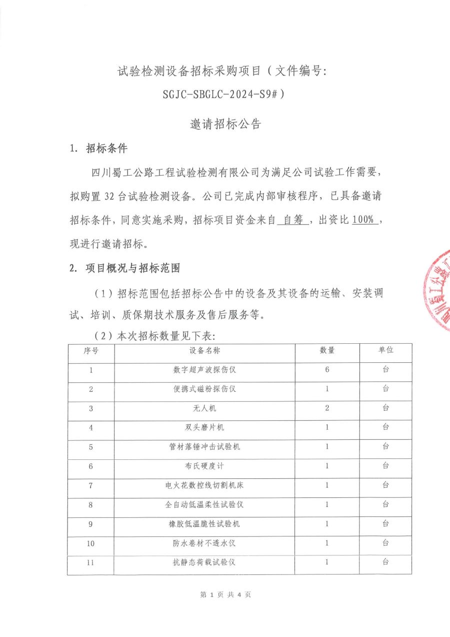 四川蜀工公路工程試驗(yàn)檢測(cè)有限公司選取2024年...