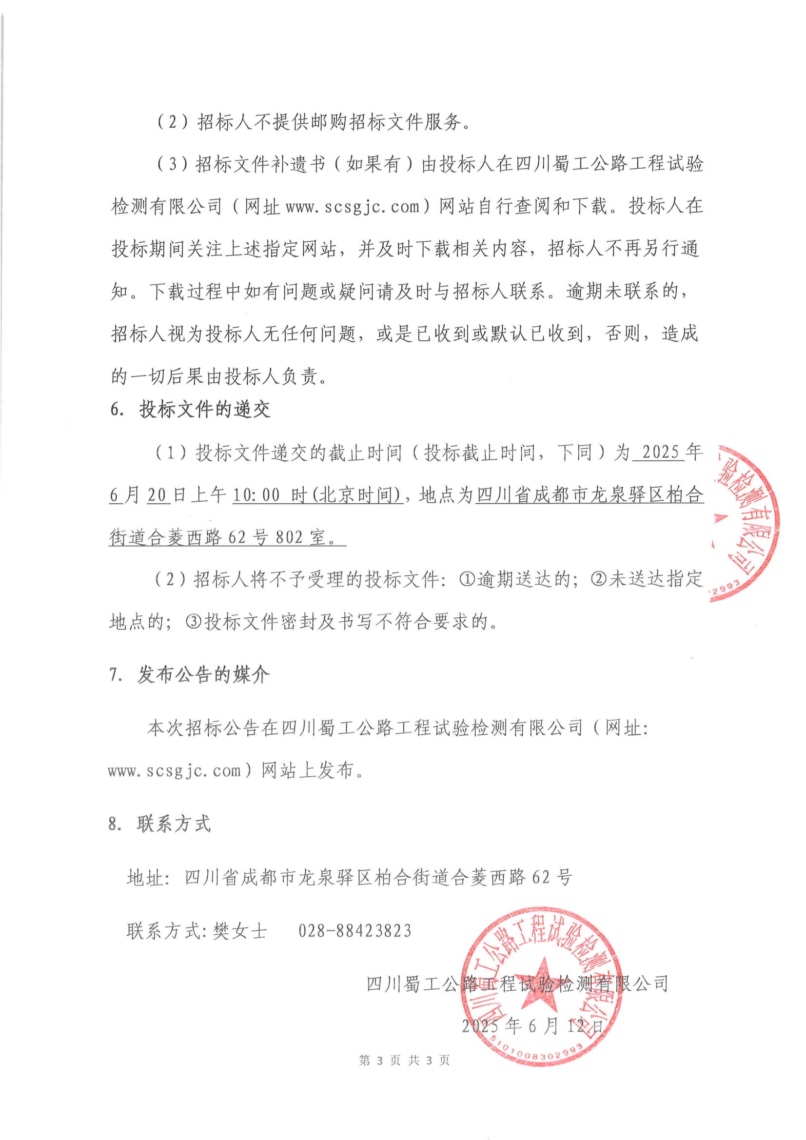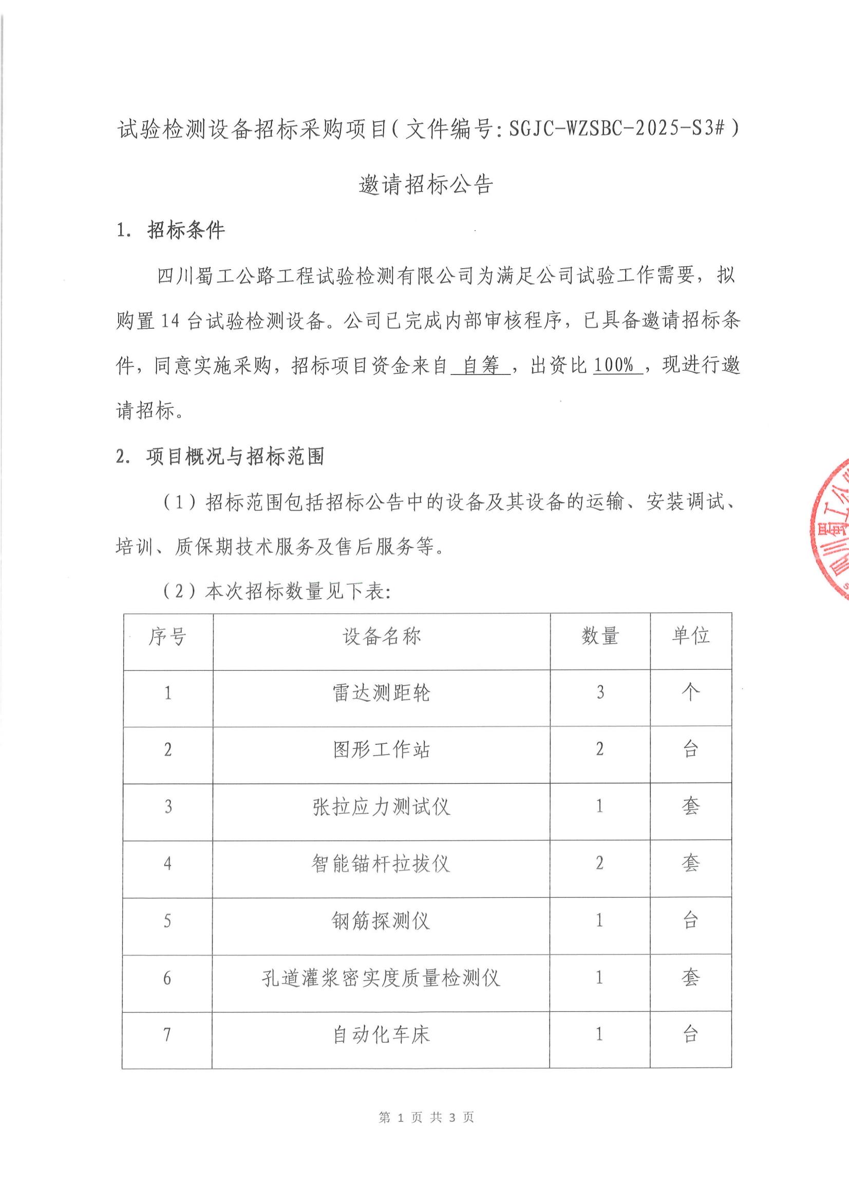 試驗檢測設備招標采購項目(文件編號:SGJC-WZSBC-2025-S3#)邀請招標公告