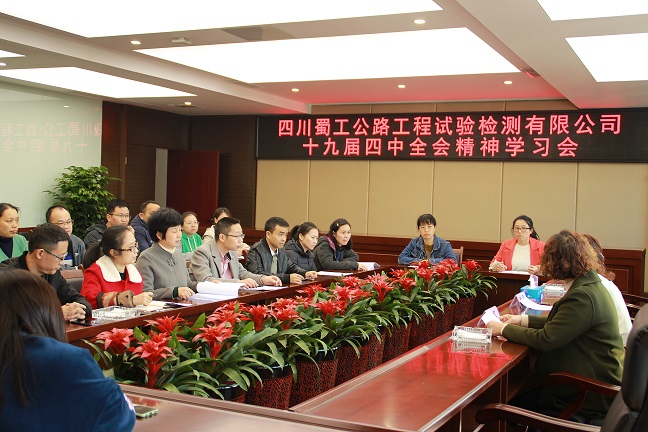黨的十九屆四中全會專題研究堅持和完善中國特色社會主義制度、推進國家治理體系和治理能力現(xiàn)代化問題并作出決定,對決勝全面建成小康社會、全面建設社會主義現(xiàn)代化國家,對鞏固黨的執(zhí)政地位、確保黨和國家長治久安,具有重大而深遠的意義。檢測公司領導高度重視全會精神的學習宣貫工作,考慮到目前正值橋隧專項資質申報現(xiàn)場評審關鍵時期,學習全會精神主要分集中學習和個人自學兩種方式開展。