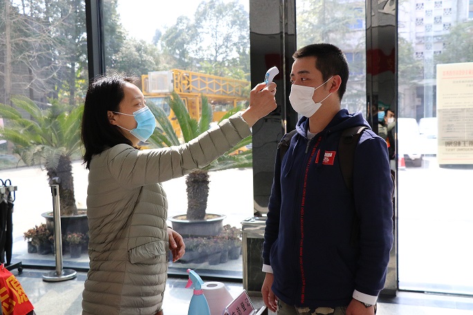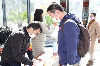 進入大門,員工必須佩戴口罩,接受體溫檢測