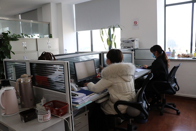 到崗員工積極投入工作中,不串崗、不聊天,都選擇線上溝通。安靜之中傳來鍵盤鼠標敲擊的聲音,是大家積蓄力量的前行。