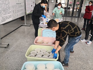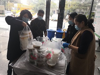 疫情期間公司實行錯時分餐制,每日由食堂工作人員配送至大廳,各部門分時段派人取餐,確保干凈衛生、安全健康。