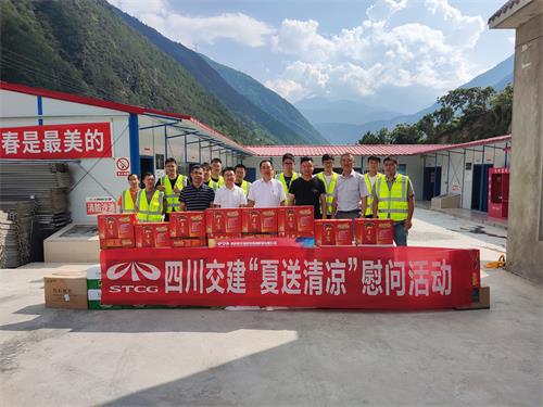 為切實做好防暑降溫工作,保證員工身體健康,確保各項工作順利進行,7月21日,四川省交通建設集團股份有限公司開展了夏季“送清涼”慰問活動。交建集團總工杜光平、瀘石高速C2合同段總包部項目經理孫來、書記肖偉、蜀工檢測副總經理王若沛一行人來到瀘石高速TJ4工地試驗室對堅守工作一線的員工進行了慰問。