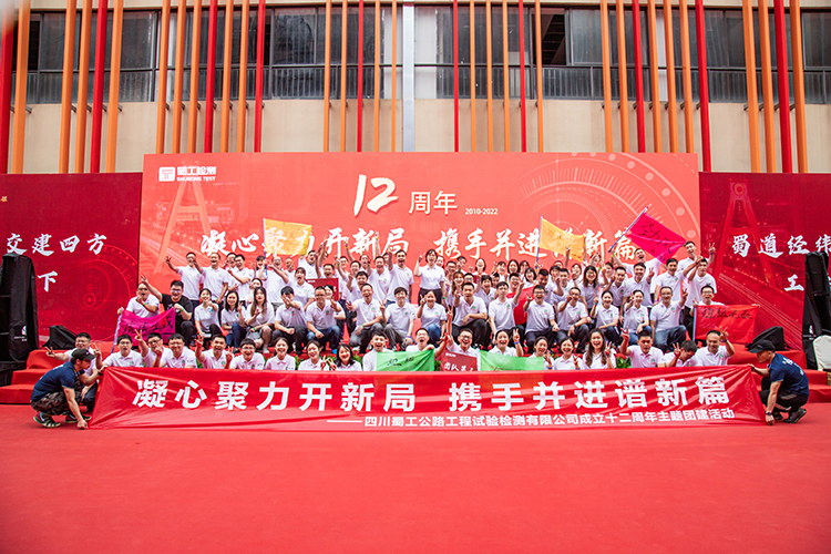2022年6月10日,蜀工檢測公司舉辦了主題為“奮進(jìn)十二載·筑夢新征程”公司成立十二周年系列活動,主要包括啟動儀式、專業(yè)技術(shù)委員會成立大會暨專題研討會、主題團(tuán)建等活動。以回顧蜀工檢測公司十二年奮斗歷程,樹立蜀工檢測的榜樣力量,吹響蜀工檢測勇攀高峰的號角,激勵全體蜀工檢測人不忘初心、牢記使命,向新征程意氣奮發(fā)。