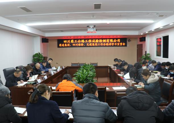 1月16日,蜀工檢測公司組織召開蜀道集團、四川路橋、交建集團工作會精神學習宣貫會。蜀工檢測公司領導班子成員、中層管理人員及部分職工代表共計43人參會,會議由蜀工檢測公司黨總支副書記、副董事長、副總經(jīng)理(主持生產(chǎn)經(jīng)營管理工作)周琦森主持。