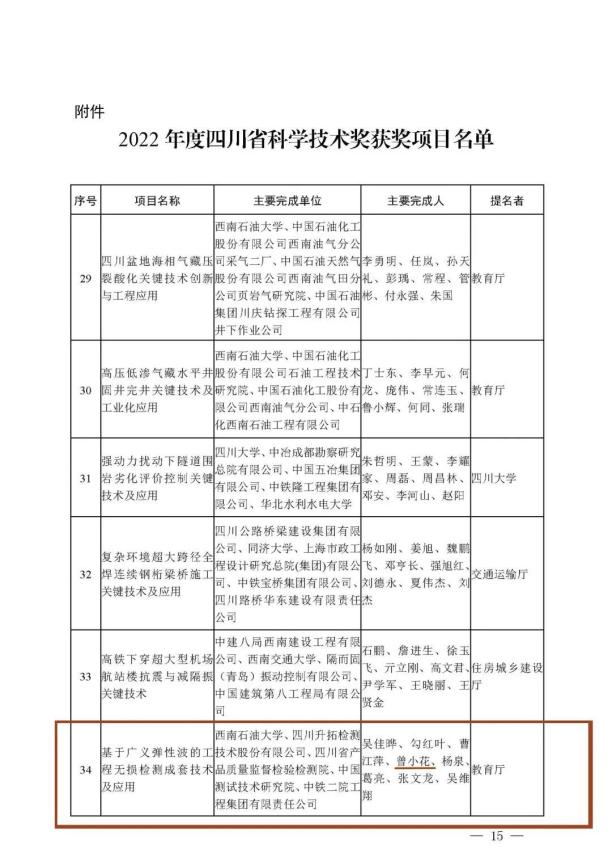 3月28日上午,四川省科學(xué)技術(shù)獎(jiǎng)勵(lì)大會(huì)暨第三屆“四川杰出人才獎(jiǎng)”頒獎(jiǎng)儀式在成都市舉行。蜀工檢測(cè)公司技術(shù)負(fù)責(zé)人、體系運(yùn)維中心總監(jiān)曾小花參研的“基于廣義彈性波的工程無(wú)損檢測(cè)成套技術(shù)及應(yīng)用”榮獲“四川省科學(xué)技術(shù)進(jìn)步獎(jiǎng)二等獎(jiǎng)”。